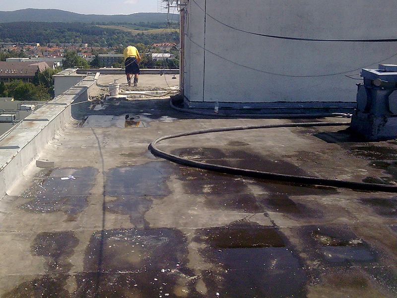 Hydroizolácie striech kvalitnými APP a SBS modifikovanými asfaltovými pásmi, s nosnou vložkou z polyesteru alebo sklenej rohože, PVC fólie ALKORPLAN, BAUDER, FLAGON, FATRAFOL. Spádovanie a zateplovanie striech termobetónovou zmesou T-300 alebo systémom INDEX PROTHERMO PUR vrátane klampiarskych, maliarskych a murárskych prác.